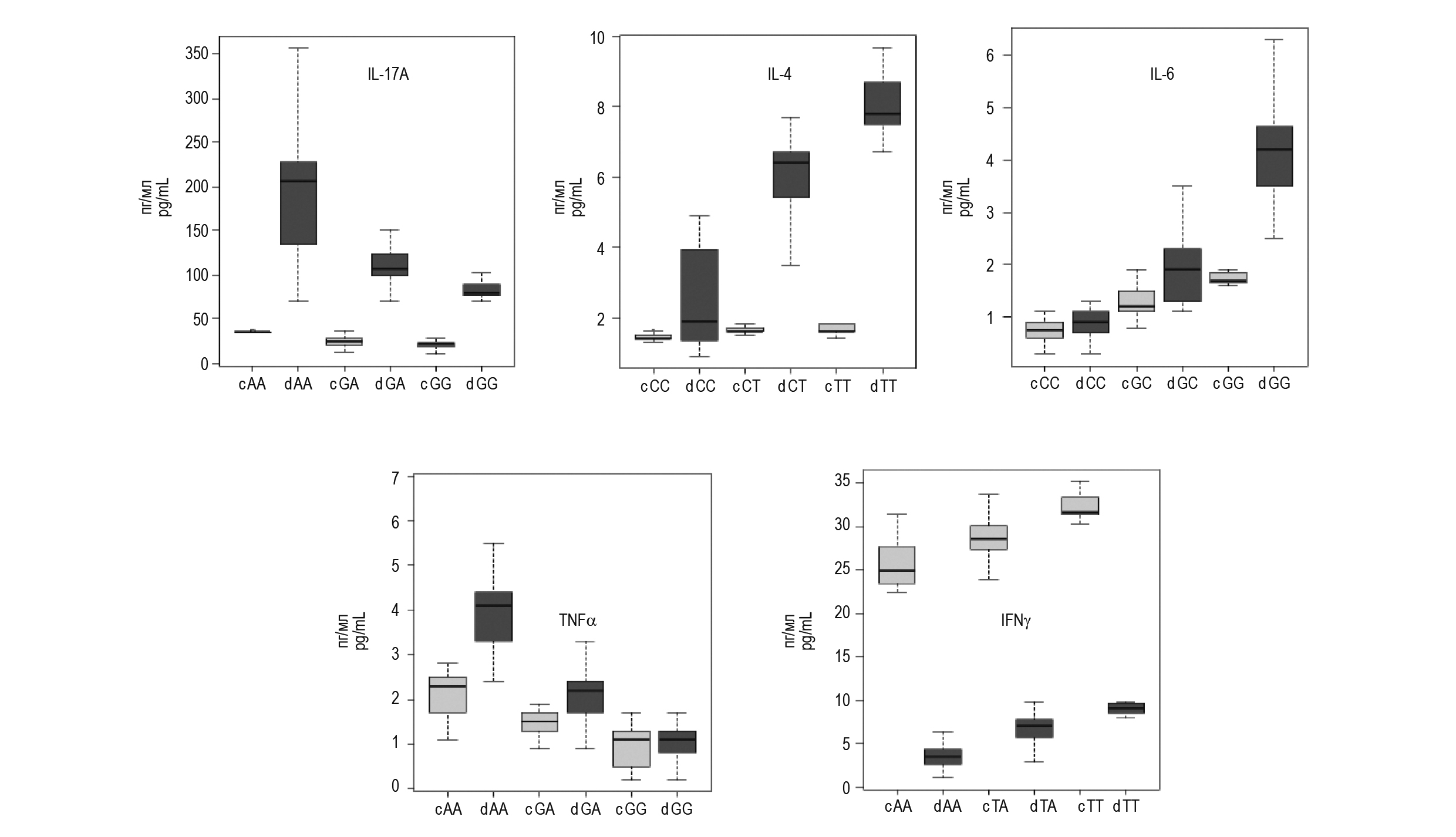 Анализ структуры и встречаемости полиморфизмов промоторной части генов IL-4, IL-6, IL- 17А, TNFα, IFNγ показал наличие и значимость корреляционной зависимости аллельных вариантов генов и продукции соответствующих цитокинов.