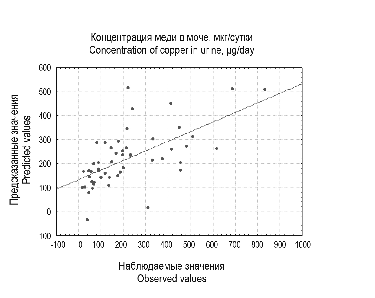 Рисунок 2. Множественная корреляционная зависимость содержания меди в моче от показателей иммунного статуса у детей с БВ
