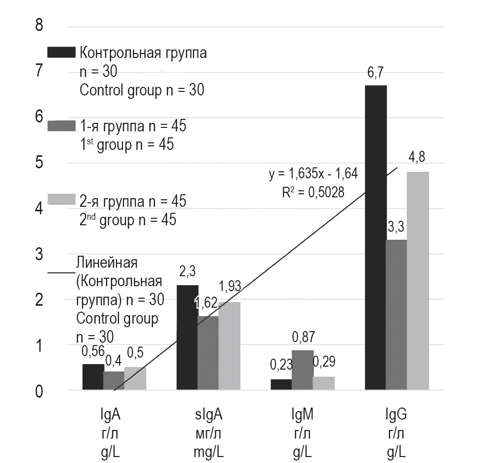 Figure 1. Indicators of humoral immunity in chronic gastritis in adolescents