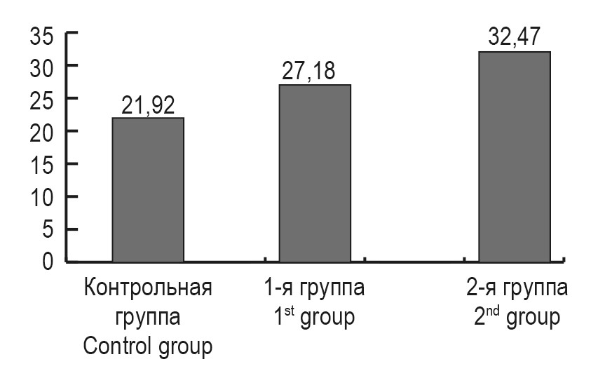 Исследования общего анализа крови показали статистически значимое снижение уровня гемоглобина и количества эритроцитов у беременных женщин с риском развития ПЭ и тенденцию к снижению цветового индекса у женщин с ПЭ. Такие изменения свидетельствуют о дальнейшем развитии железодефицитной анемии (ЖДА) у данной группы пациенток. Особенно выраженные изменения наблюдались у беременных 2-й группы.