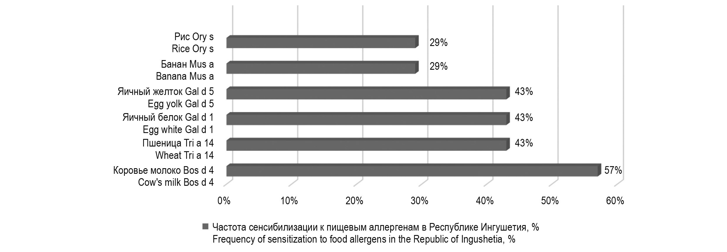 Figure 2. Spectrum and frequency of sensitization to food allergens in the Republic of Ingushetia, %