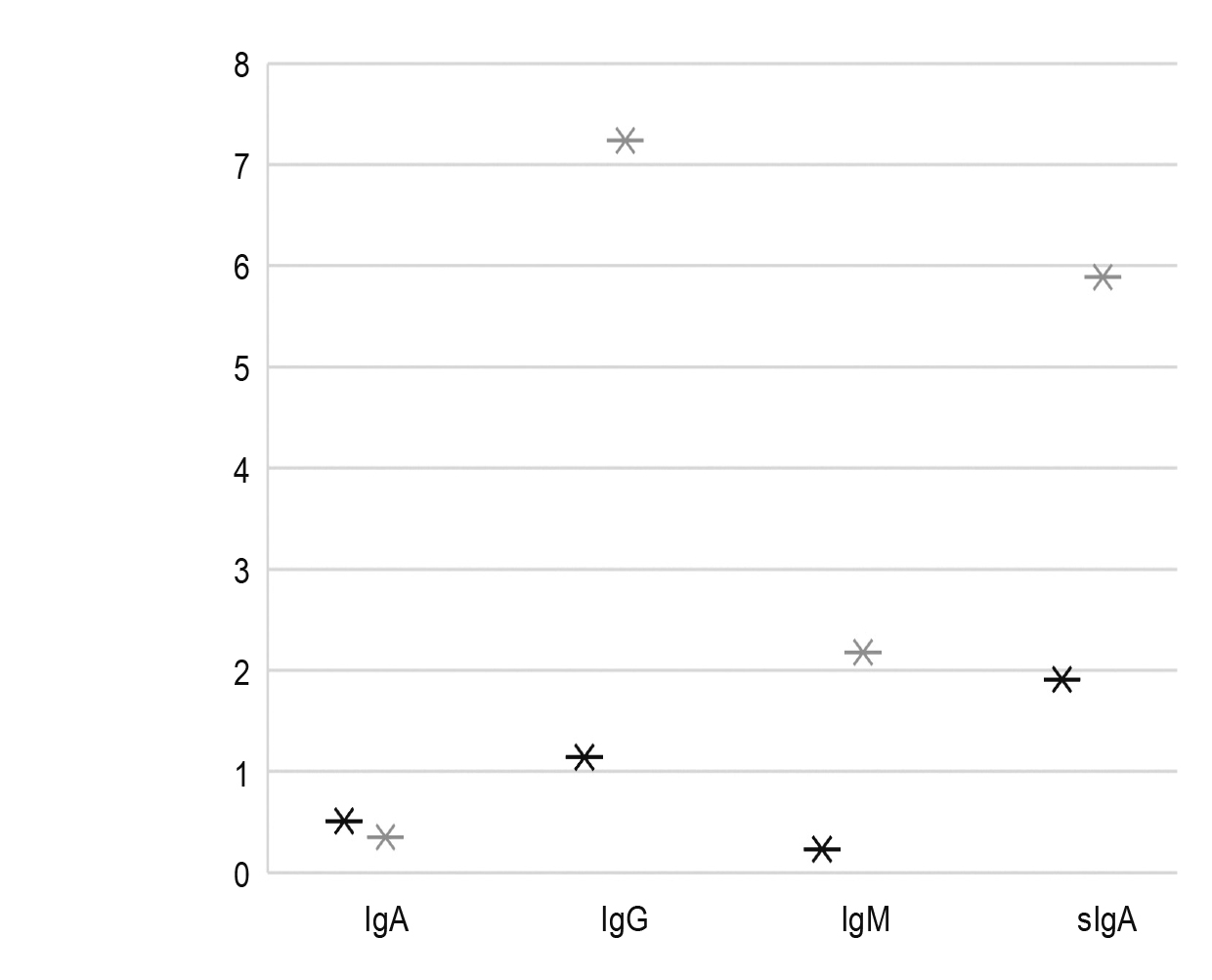 Figure 2. Serum immunoglobulin content (pg/mL) in patients with acute rhinosinusitis after measles